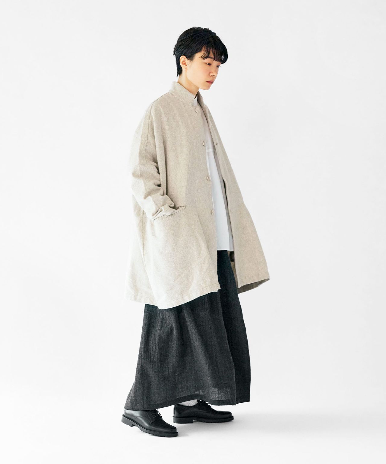 襟は小さめなので、スタンドカラーにしても重たくならず邪魔にもなりません。