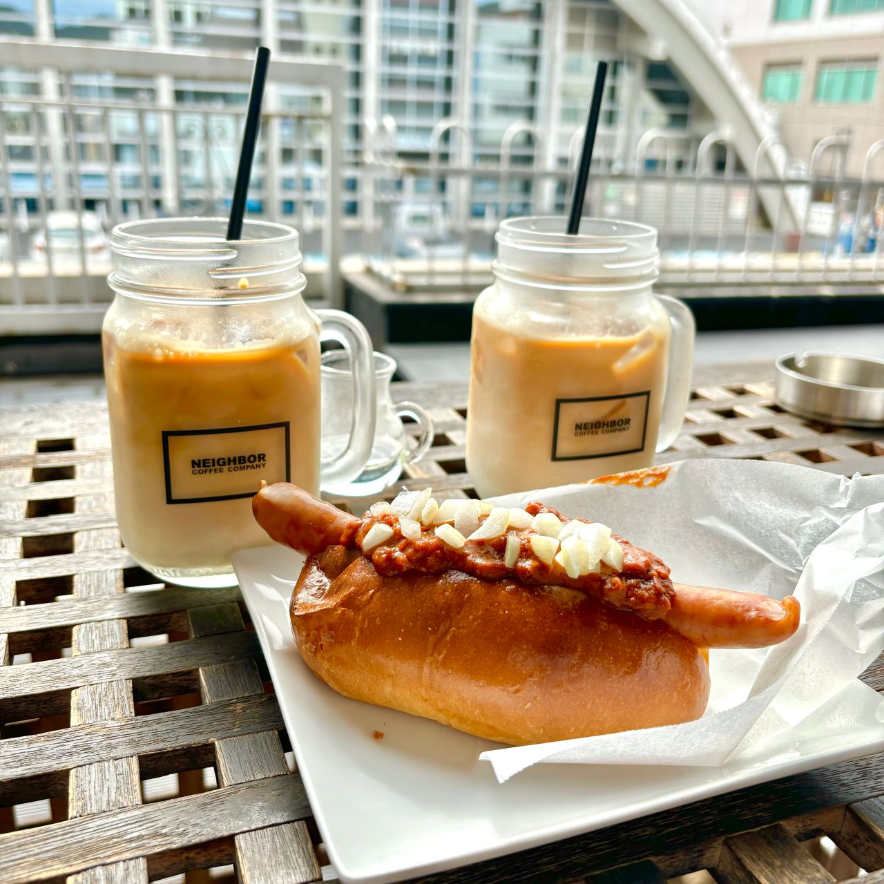 こちらのカフェはメニューも多く、美味しいコーヒーにホットドッグなどの軽食も食べられるので
