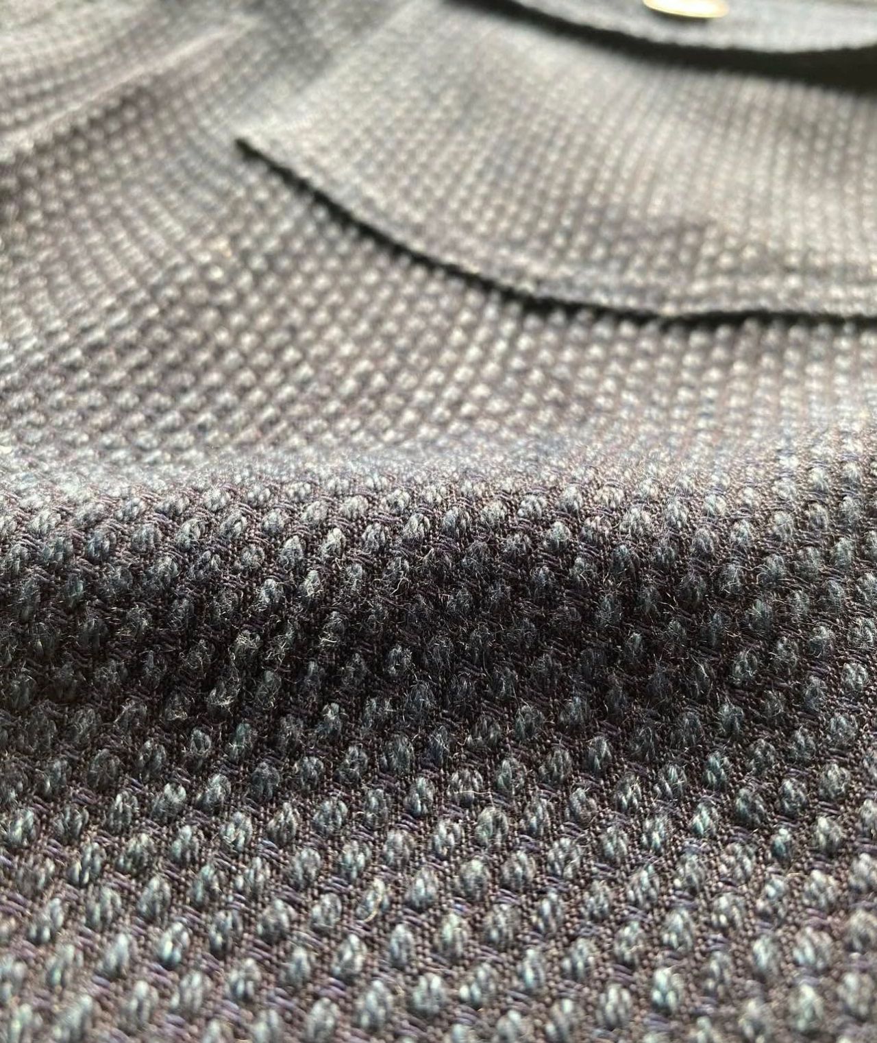 刺し子生地は、綿糸を交互に織り込んだ、凹凸が特徴のしっかり厚手な素材。