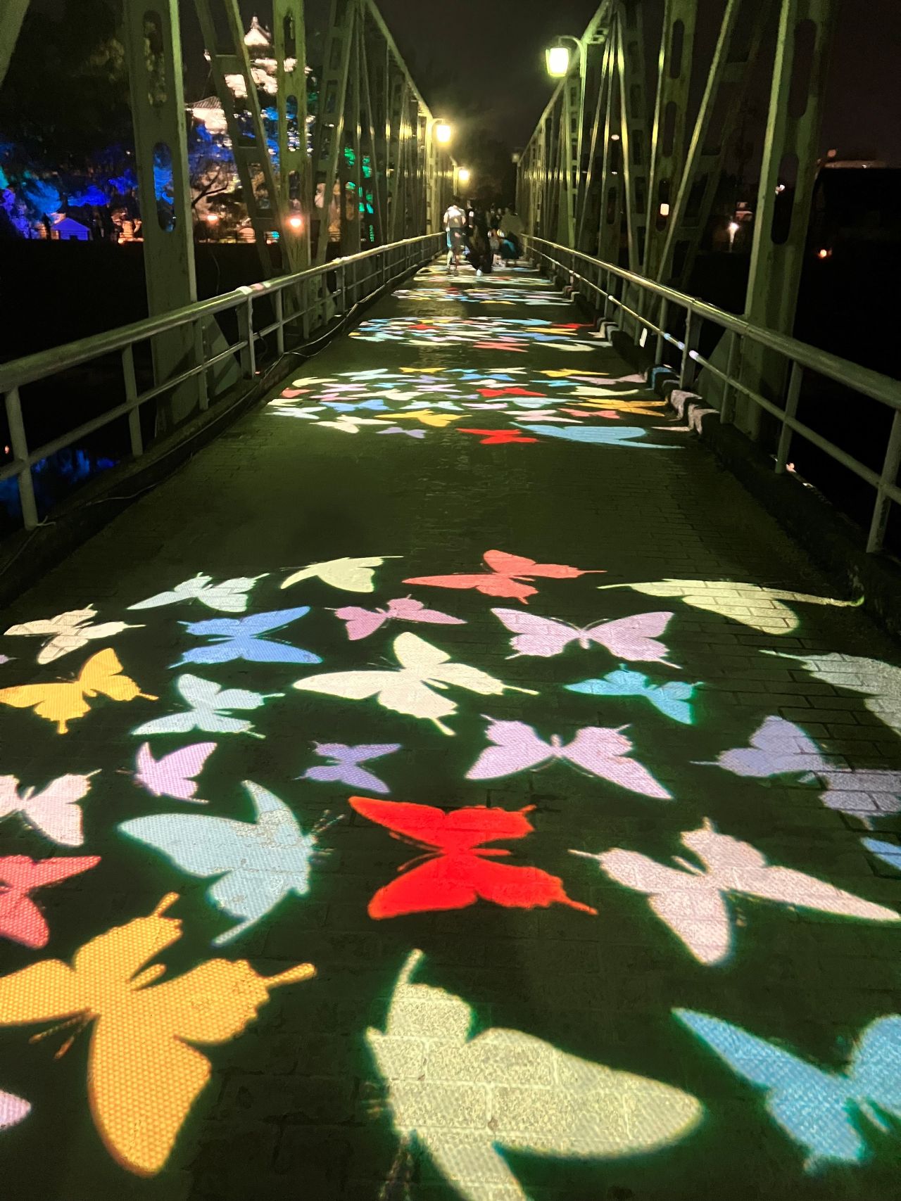 向かう途中、橋に映し出された蝶々や、水面に映る岡山城が綺麗すぎて。