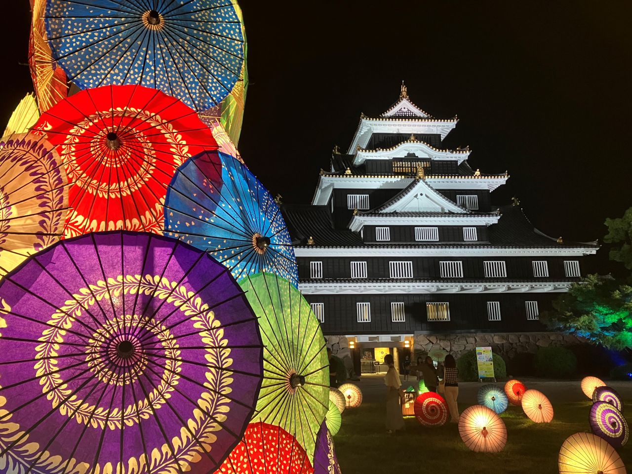 岡山城の前には様々な柄の和傘が///
