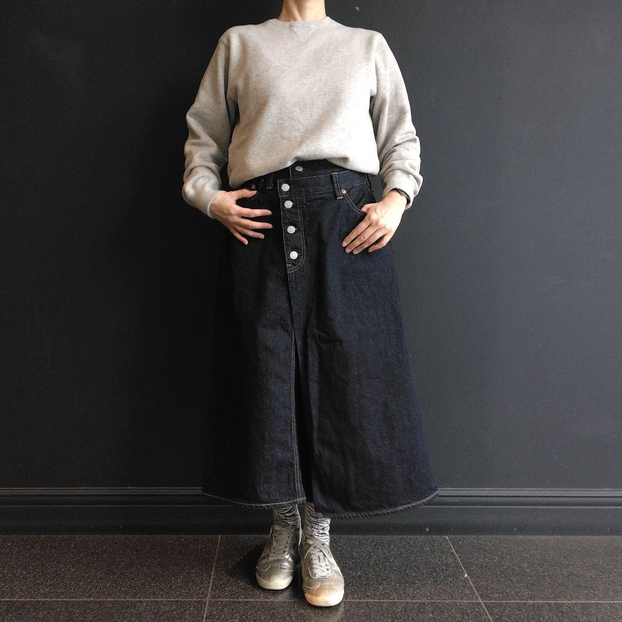 桃太郎ジーンズの巻きスカート。