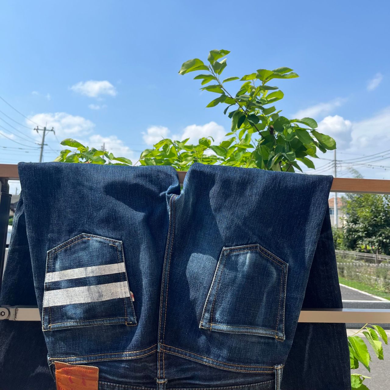 良く晴れていた休日に、15分くらい表面のままでジーンズを日干ししておりました♪
