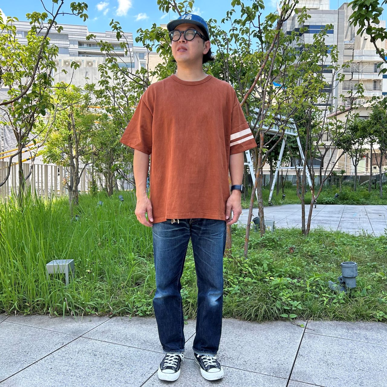 デニムとの相性は抜群。秋口にはデニムジャケットと合わせるのもいいですね。