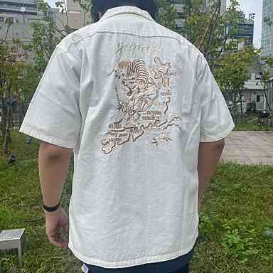 スカジャンのデザインを落とし込んだデザインのデニムシャツです!