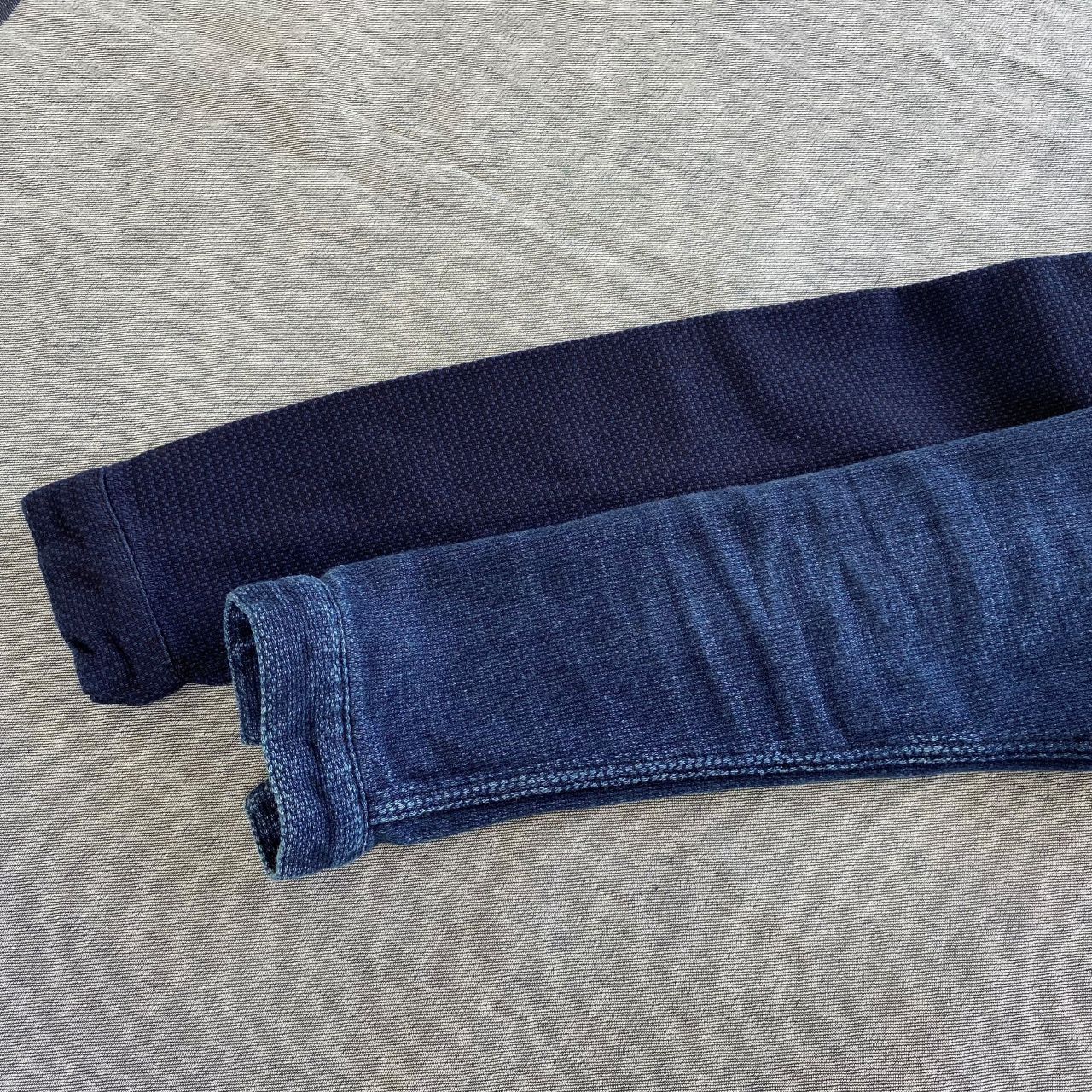 ジージャンのような色落ちをこのしなやかな生地で作ろうと思いました。