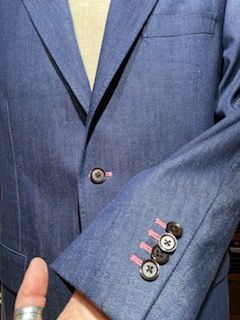 シングルブレストのジャケットにボタンホールをピンクの糸色に変更で