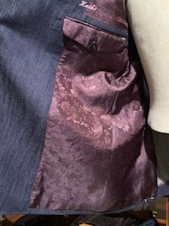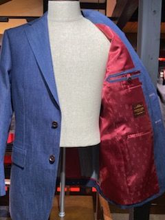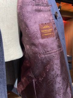 ダブルブレストのジャケットに新柄のペイズリー(ワインレッド)をオーダーされたものです。