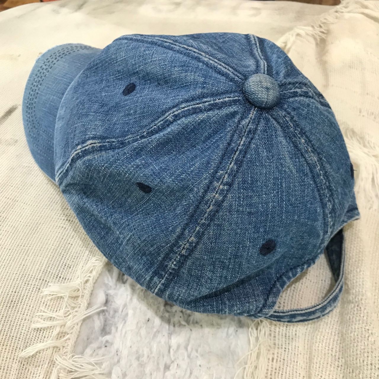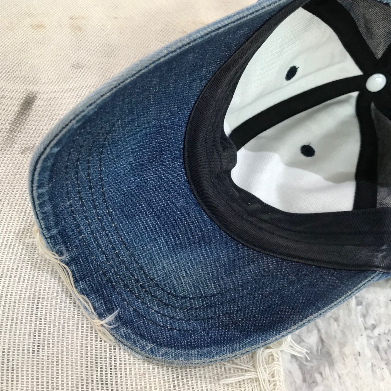 デニムが破れ鍔の芯が露出し、いい味醸し出してます。