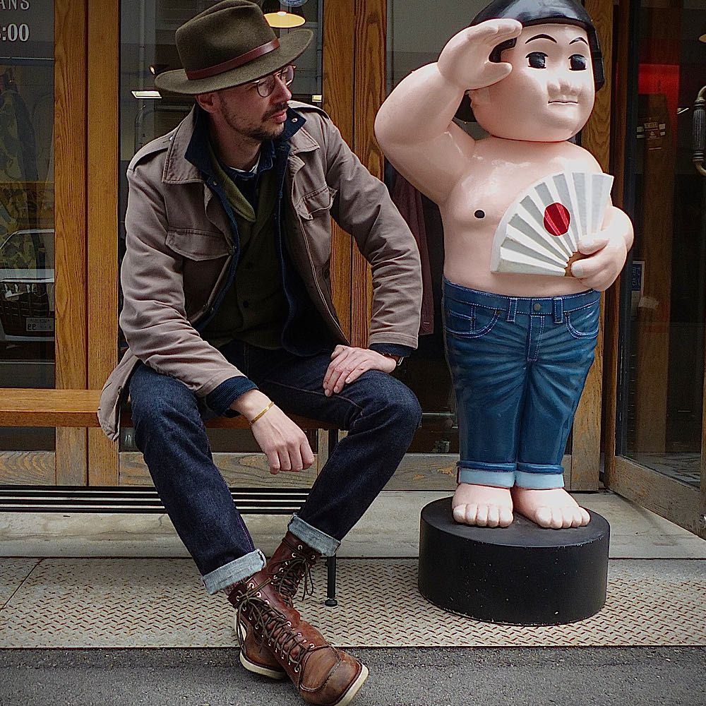もちろんブーツばっかりではなく、ロールアップしてスニーカー履いても相性がいい合わせだと思います。