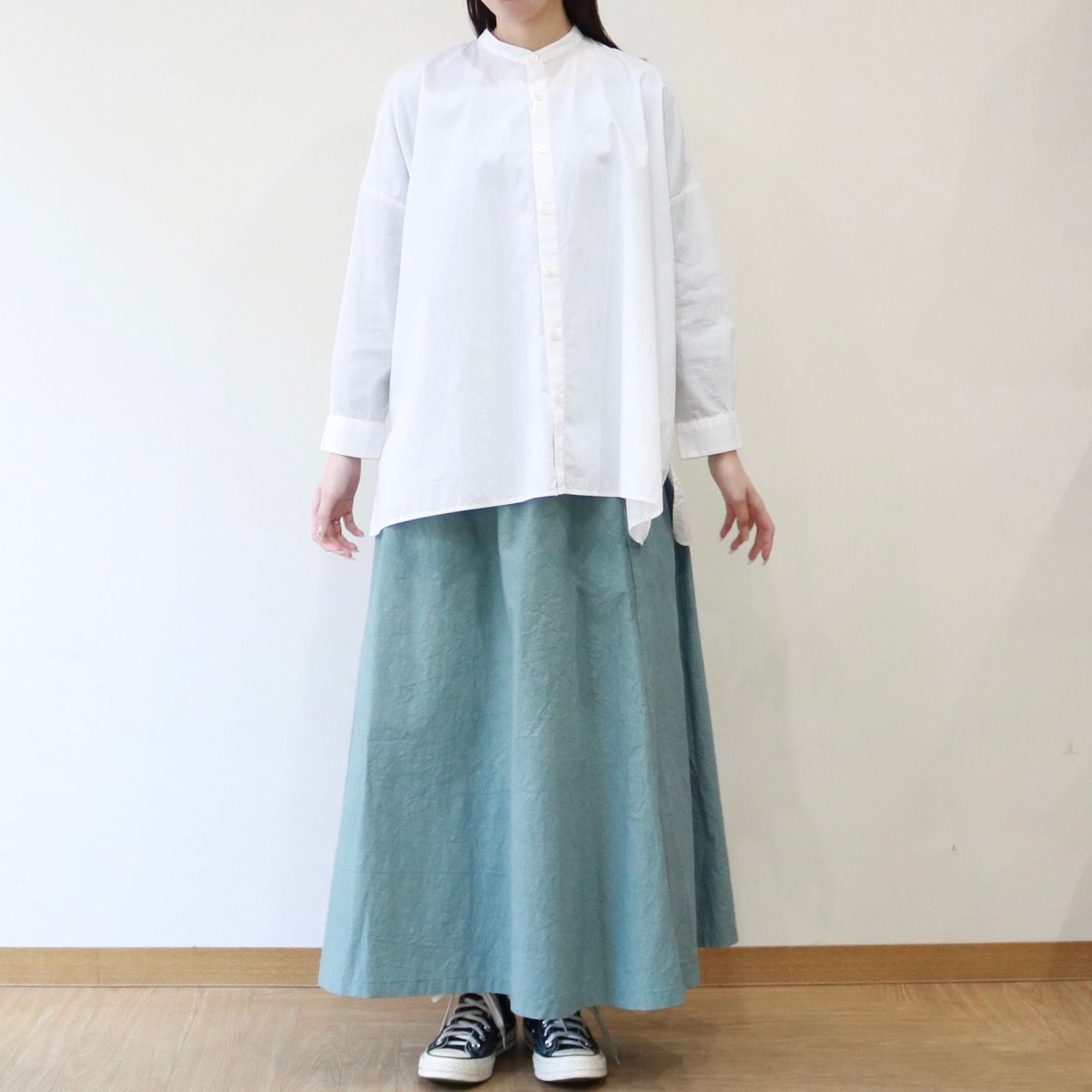 ボトムはウエストに細かなギャザーが入ったロングスカートと、